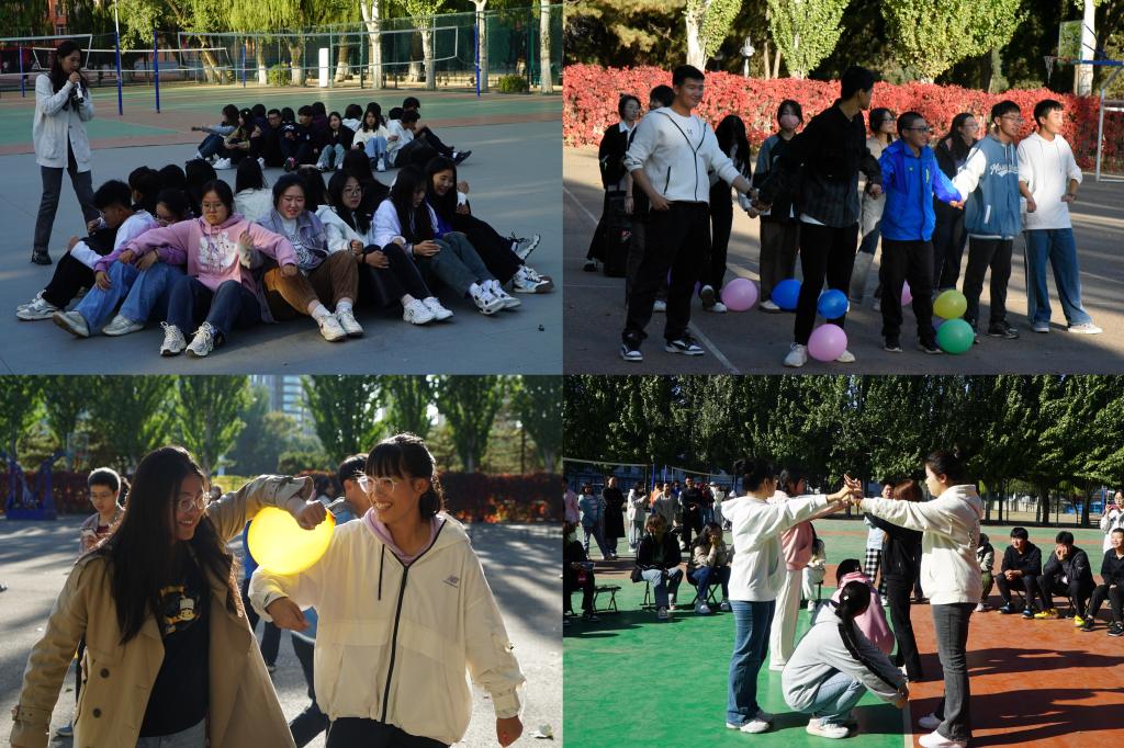 2023级大一新生5个班中依次展开。活动现场气氛热烈,“齐眉棍” “传声筒”“心有千千结”…… 随着各种活动项目的展开,同学们从疏离、熟悉、到产生默契,共同携手完成了一个又一个团结协作大考验,在欢声笑语中分享彼此内心真实的感受。