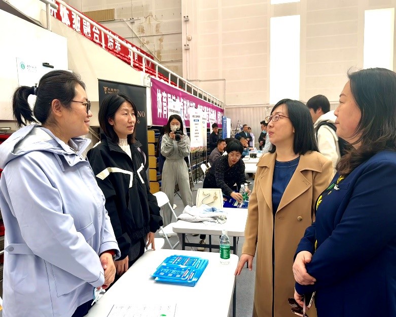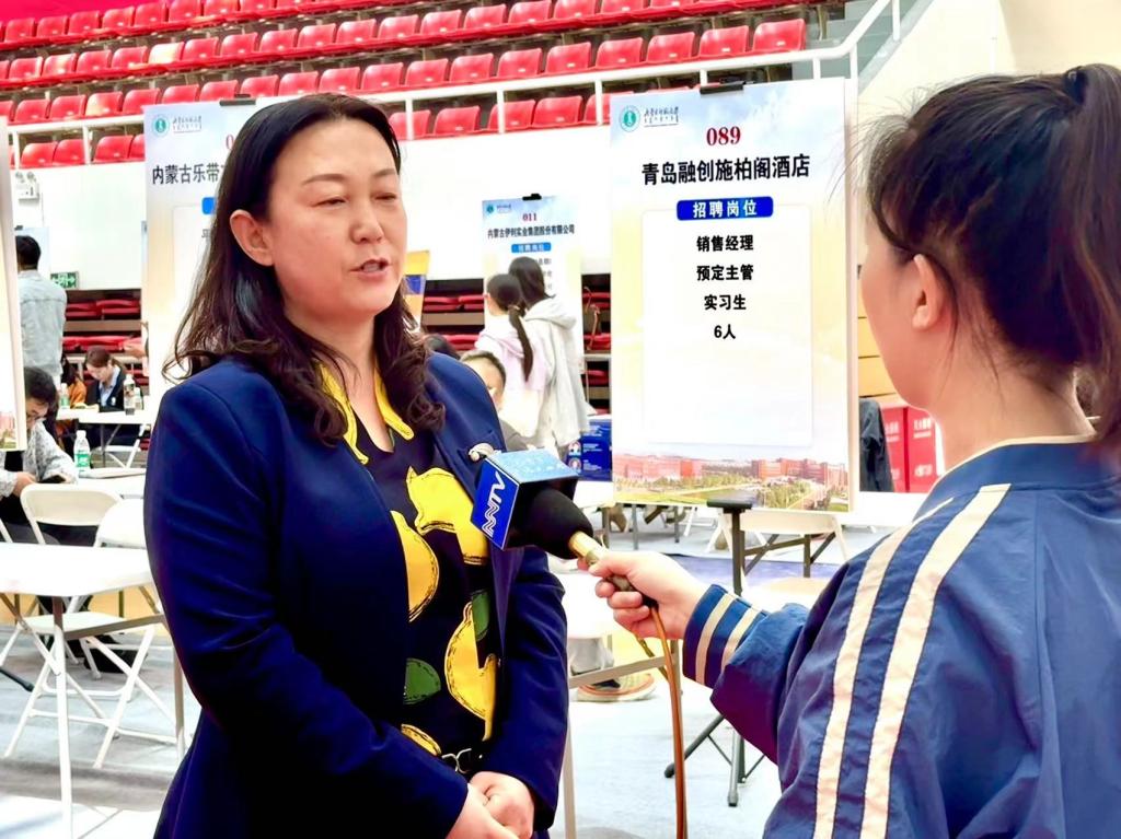 党委书记包凤兰也就用人单位的专业需求与毕业生和参展单位进行沟通,并接受奔腾融媒专访。