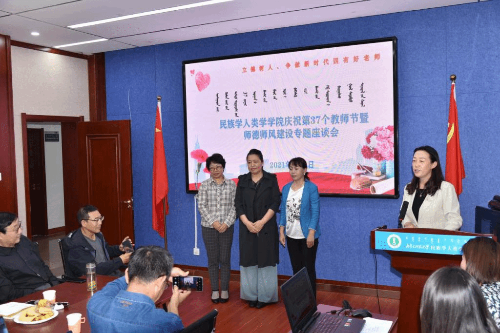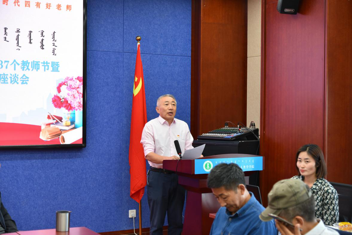 会上院长乌日陶克套胡致辞。乌院长首先向新加入的社会学、社会工作专业的18位老师的到来表示热烈的欢迎!紧接着对学院过去一年的人才引进、教学、科研等方面过的工作进行了回顾。之后对今年光荣退休的铁安老师、在教学、科研和班级管理等方面突出表现的谢咏梅、麦拉苏、陈引弟等几位老师在自己平凡的岗位上勤勤恳恳工作,为教育事业做出无私奉献的精神表示崇高的敬意。乌院长的讲话,充分肯定了教职工对学院发展的功绩,让教职工们感到温暖和荣耀。