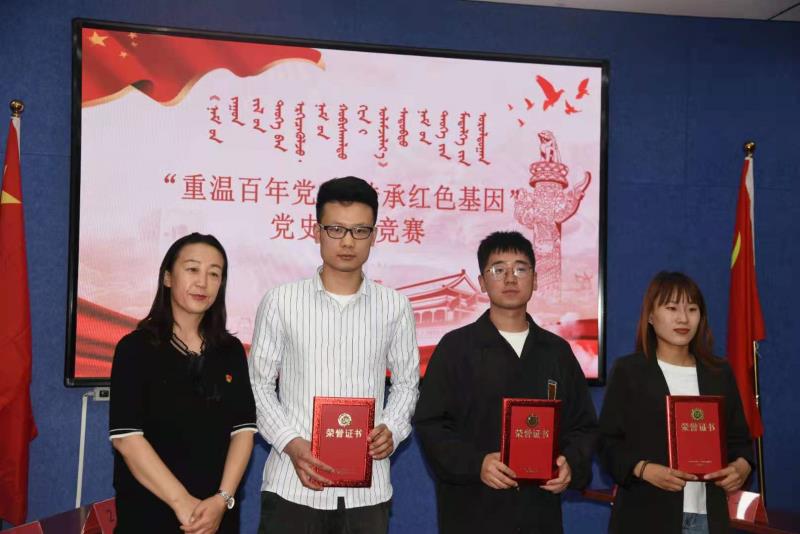 党总支书记包凤兰、党总支副书记阿荣、团总支书记朱苏道、学工办主任包双成和参赛选手15人以及全体本科生。