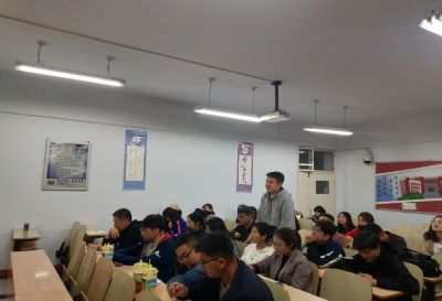 第二团支部举办的主题“学习中华人民共和国国旗法”,带领全体同学歌唱了国歌。