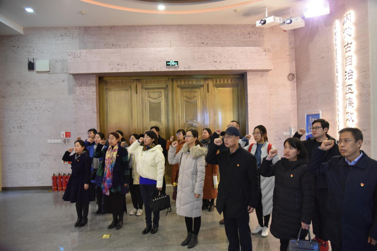 与经济管理学院、继续教育学院的老师们在内蒙古自治区廉政教育展厅内举行了重温宣入党誓词仪式。