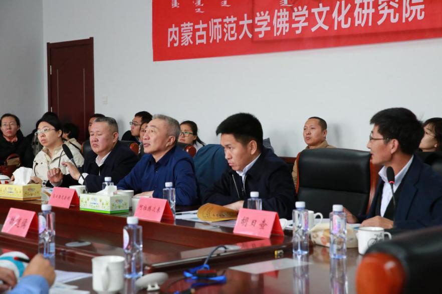 科研楼301会议室隆重召开。会议由佛学文化研究院执行院长胡日查教授主持,中国社科院世界宗教研究所学部委员卓新平、魏道儒,前党委书记曹中建,《世界宗教研究》副主编李建欣应邀参加了此次座谈会。前来参会的校外嘉宾还有鄂尔多斯市伊金霍洛旗旗委常委、统战部部长阿拉腾达来,乌兰活佛管理局局长苏雅拉图,我校民族学院院长乌日陶克套胡以及其他相关专业的师生三十多人也莅临参加了此次座谈会。