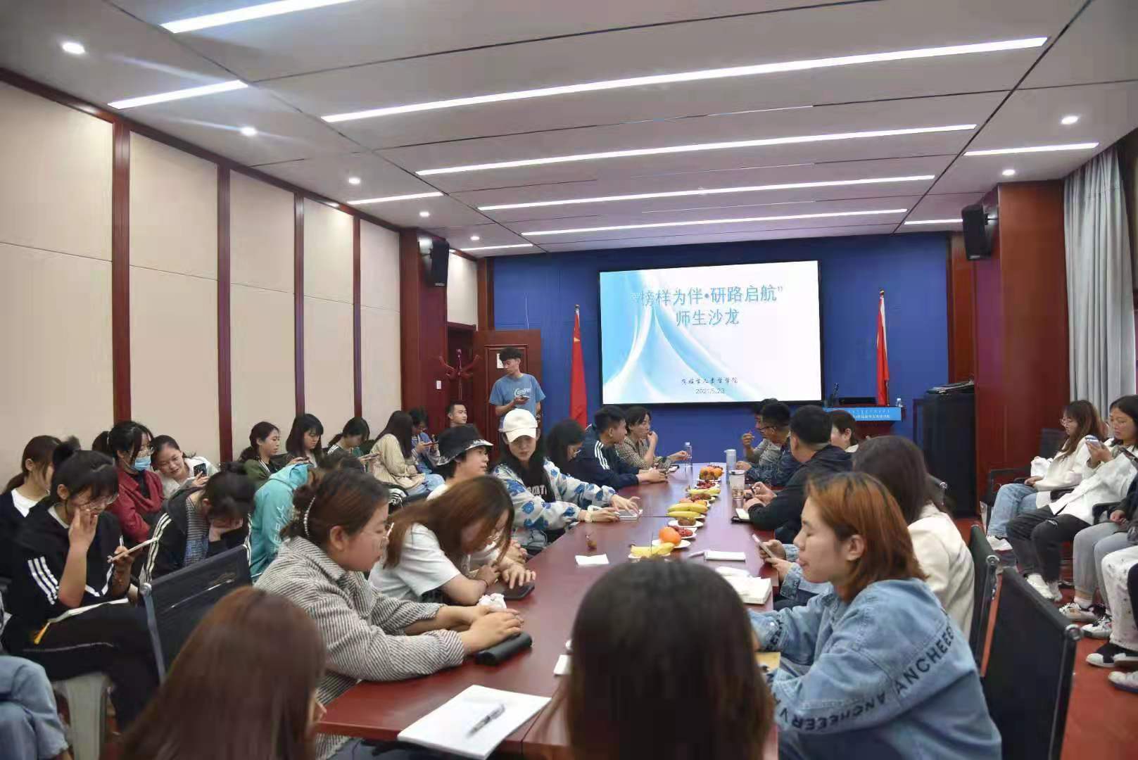 在5月23日晚举行“榜样为伴·研路启航”师生沙龙共同学习、共同交流。