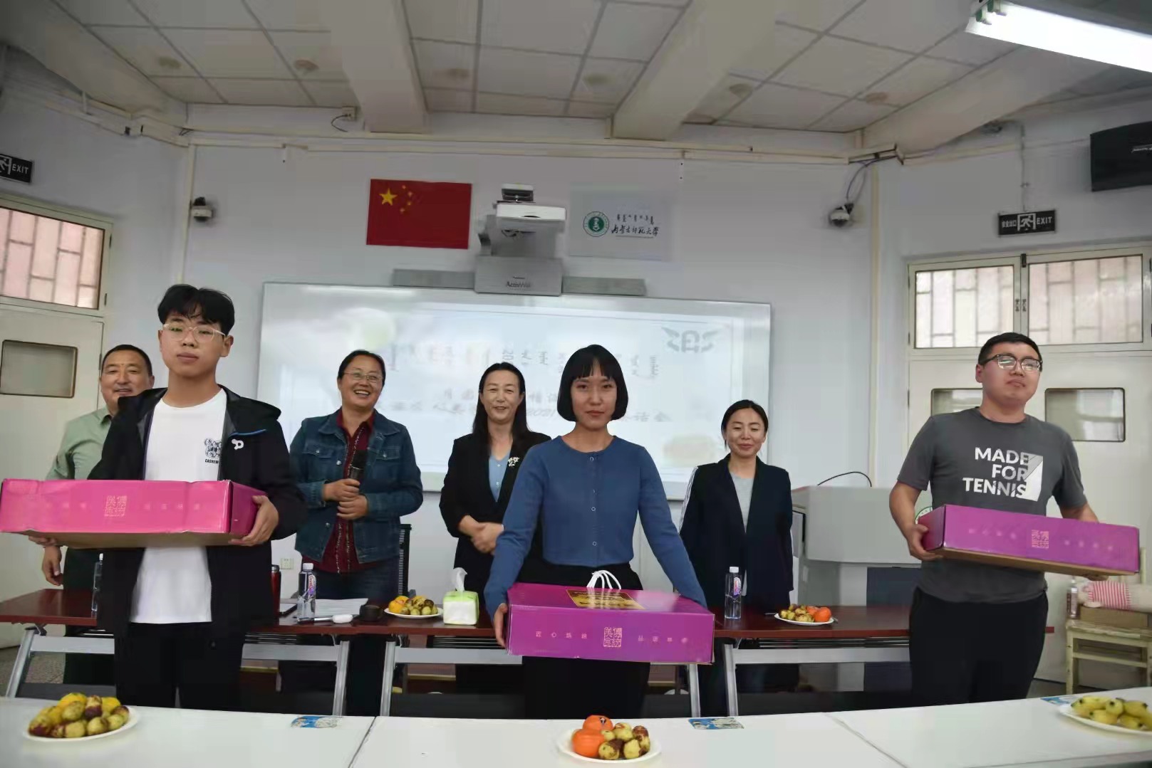 接着,包凤兰书记对到场的所有人员致以中秋节的慰问,并与现场的领导老师共同为同学们发放中秋节礼物,不论是月饼还是水果都饱含着各位领导老师对同学们的祝福。