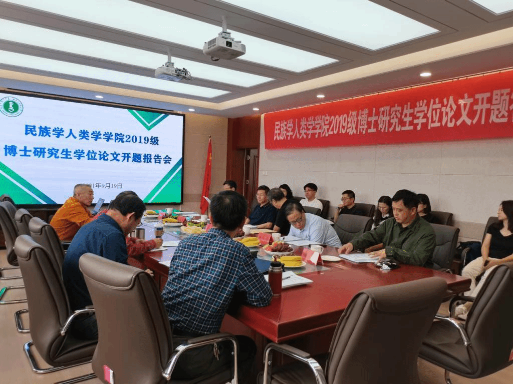 2019级博士研究生学位论文开题报告会。此次开题报告会由四川大学铸牢中华民族共同体意识研究基地首席专家、教育部民族学类专业教学指导委员会副主任委员石硕教授主持、参加开题报告会其他成员有青海省社会科学院原院长赵宗福教授、国务院民族学学科评议组成员中南民族大学民社院院长田敏教授、南开大学周恩来政府管理学院高永久教授、湖北大学历史文化学院院长黄柏权教授等。