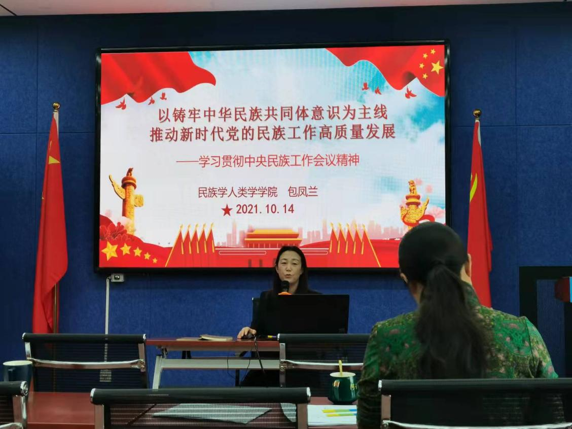 党委书记包凤兰在田楼615会议室为全院教工做了题为“以铸牢中华民族共同体意识为主线,推动新时代党的民族工作高质量发展”的有关中央民族工作会议精神的宣讲。