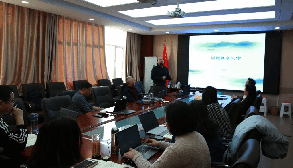 社会工作学位点负责人常宝教授做了题为“说说社会工作”专题培训。他从社会工作的价值观、角色等十二个方面介绍和阐释了社会工作专业的理念与方法。