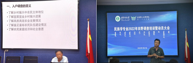 民族学专业2022年田野调查培训暨动员大会在615会议室召开。参加会议有院长乌日陶克套胡、系主任王瑞军、各带队教师、2020级民族学全体本科生及部分研究生参加了会议,会议由副院长满达主持。