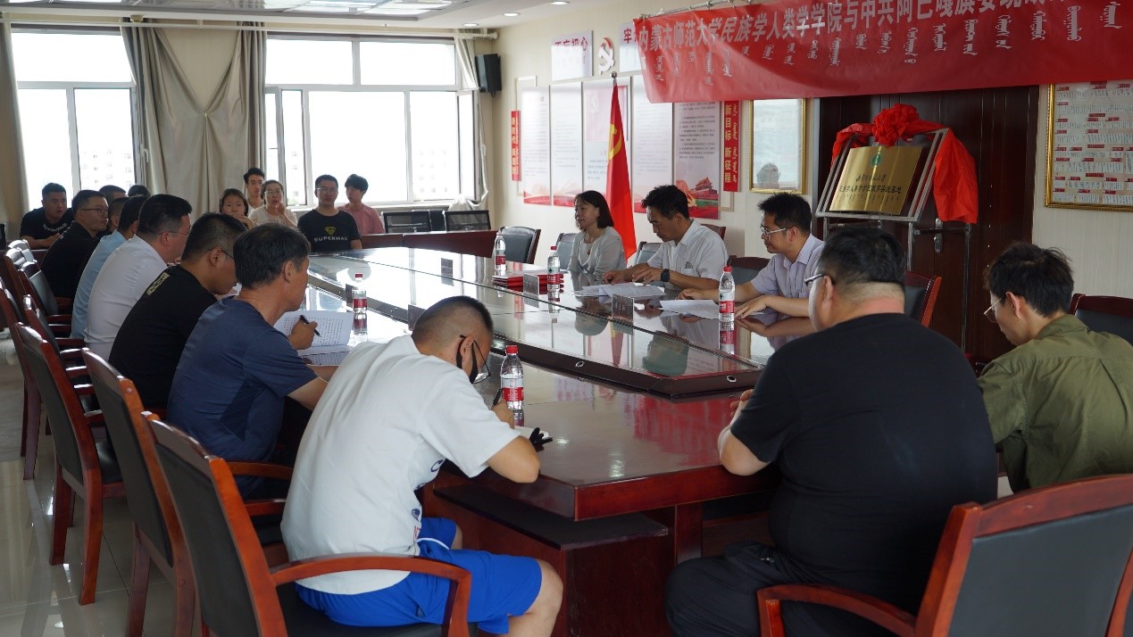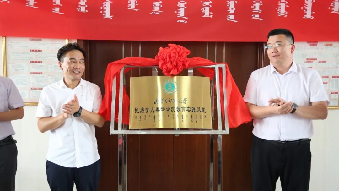 副院长满达与毛紫楠部长共同为“内蒙古师范大学民族学人类学教育实践基地”揭牌。