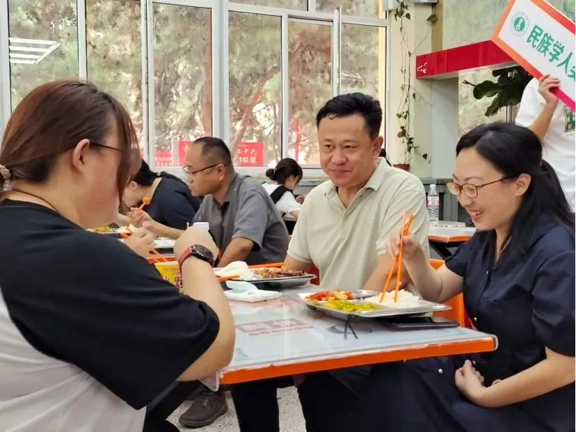 党委书记包凤兰、党委副书记副院长陆一琼、团总支书记姜鑫、学生工作与就业办公室主任包双成、各新生班班主任与新生及其家长在学校食堂共进“入校第一餐”,让家长和学生们品尝食堂美食,了解学生日常用餐情况,在轻松愉快的氛围中倾听家长的意见与建议,畅谈学生的学习与生活情况,共同探讨孩子的成长策略。