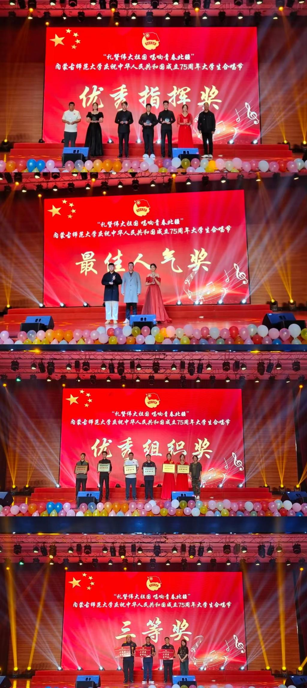 在内蒙古师范大学庆祝中华人民共和国成立 75 周年大学生合唱节中荣获众多奖项!