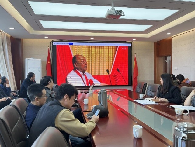包书记特别提到,杨士莪同志的事迹不仅仅在于他在学术研究上的突出贡献,更在于他对党忠诚、为人民奉献的一生,他的革命精神、担当精神和奉献精神在每一项工作中都得到了充分体现,值得我们每一位教职工学习和践行。随后全院教职工集体观看了杨士莪同志生平事迹报道。