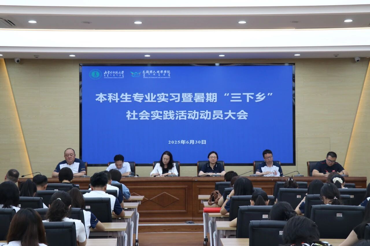 本科生专业实习暨暑期“三下乡”社会实践活动动员大会在勤政楼研究生院会议室召开。学院党委书记包凤兰、副书记副院长陆一琼、副院长满达、团总支书记姜鑫、全体带队教师以及2023级民族学、社会工作专业全体学生齐聚一堂,共同为即将启程的暑期社会实践之旅凝聚力量、注入活力。动员大会由副院长满达主持。