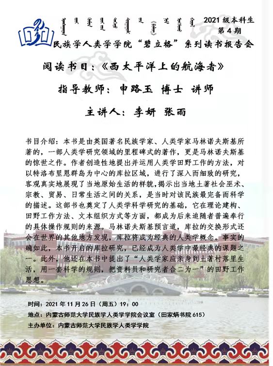 “碧立格”系列读书会民族学专业本科生第4期预告