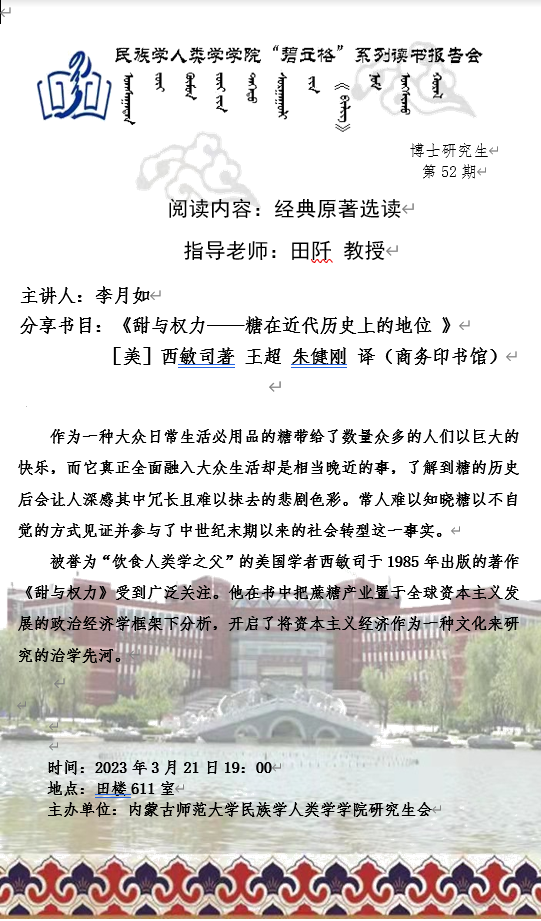 被誉为“饮食人类学之父”的美国学者西敏司于1985年出版的著作《甜与权力》受到广泛关注。他在书中把蔗糖产业置于全球资本主义发展的政治经济学框架下分析,开启了将资本主义经济作为一种文化来研究的治学先河。