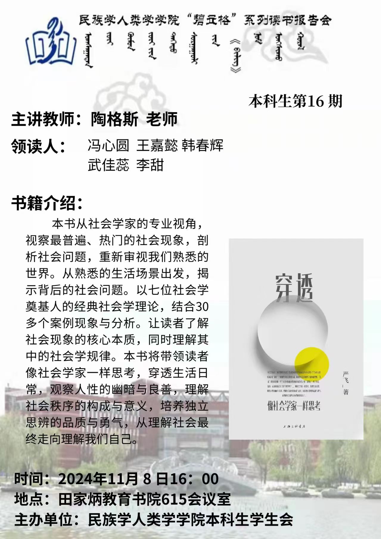 Ai足球预测 “碧立格”系列读书报告会预告 本科生第16期