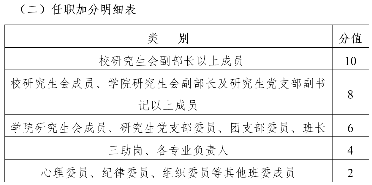 2. 身兼多职者,取其任职加分中最高分,不得累加。