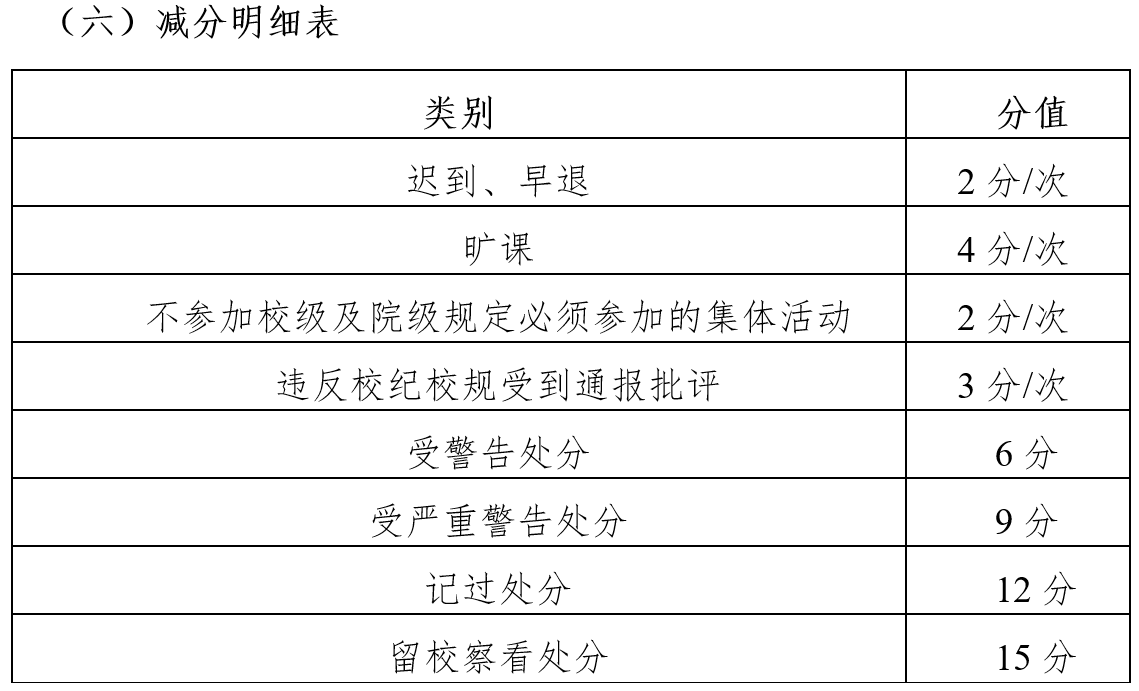 日常表现加减分明细(具体填写附件二):