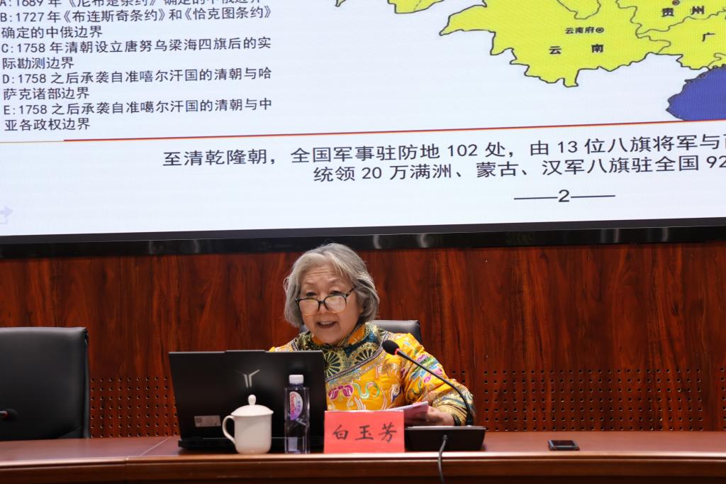 中国作家协会会员、吉林省社科院民族研究所、吉林省满族说部学会特聘研究员、黑龙江大学满族语言文化研究中心特聘研究员白玉芳应邀为我校师生开展题为“好一幅中华民族共同体电报线路图”的学术讲座。讲座由Ai足球预测-足球ai预测结果 副院长满达主持,邀请了内蒙古师范大学资深教授纳日碧力戈和内蒙古师范大学科学技术史研究院聂馥玲教授担任与谈人,我校师生共100余人聆听了此次讲座。