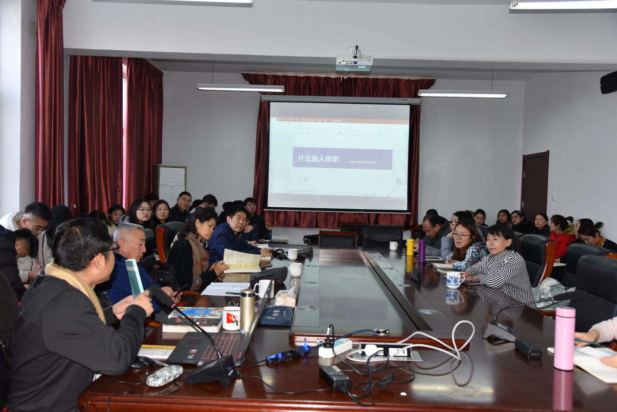 于2019年12月29日下午3点在科研楼301举行第八期读书会,民族学博士苏玉明老师为大家领读了挪威人类学家埃里克森的专著《什么是人类学》一书。本次读书会由博士生李丽萍主持,院长乌日陶克套胡老师、丁龙召老师、塔娜老师、普华才让老师、张径真老师、李玉峰老师、杨冰华老师、包双成老师以及博士生、硕士生、本科生共53人参加了本次读书会。