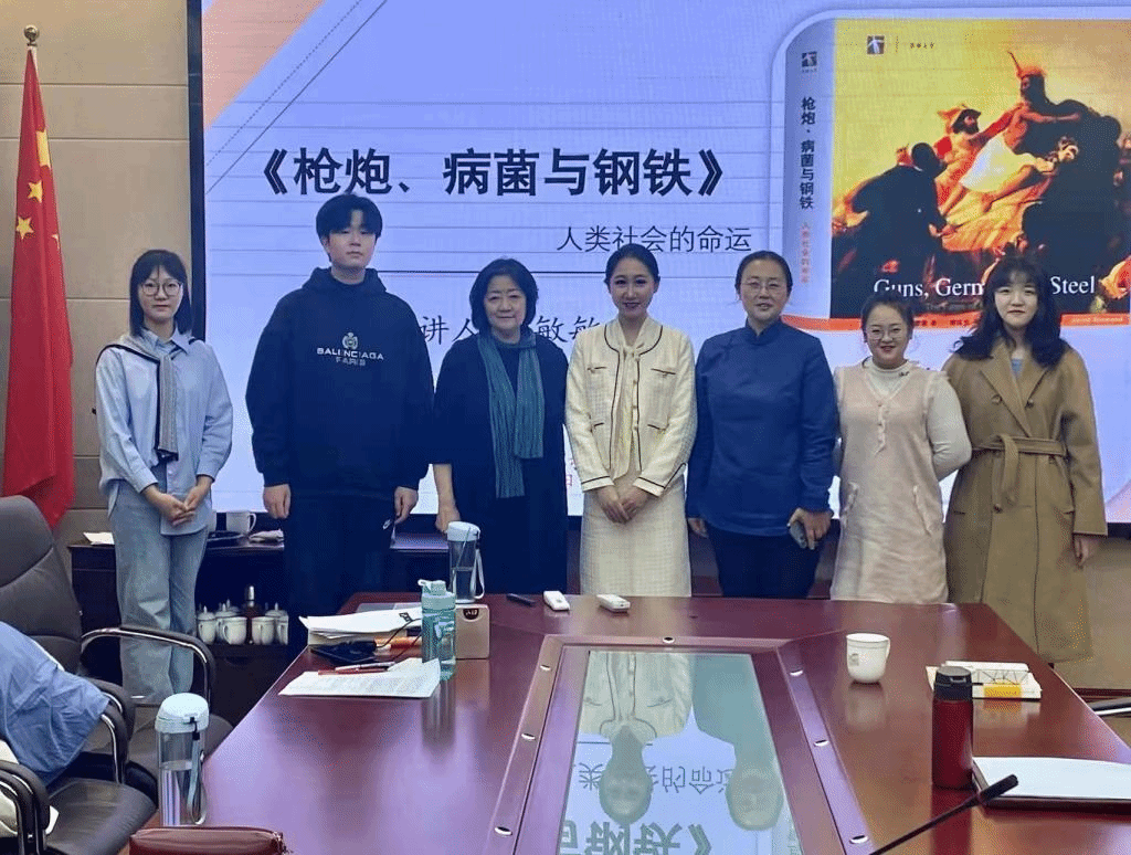 之后,乌仁其其格老师对本次读书分享会进行总结。乌老师首先建议同学们应该注意作者的学术背景和本书的理论支撑,还应该思考本书所采用的研究方法、作者的观点以及研究的结论。其次,乌老师认为同学们可以从各个学科的角度尝试与这本书“对话”,应该拥有批判与质疑的精神。最后,乌老师针对这本书的特点也提出了一些见解:第一,这本书的议题很大,能够引起各专业学者的共鸣;第二,作者知识广博,学科通融,不拘限于学科,可读性很强且可供很多跨专业的同学去研读;第三,本书不是以学科为导向的,而是以问题为导向的,作者的研究也体现了其现实关怀。乌老师认为以上特点也是这本书虽没有提出新的论点但是却如此畅销的一些原因。此外,乌老师还向同学们介绍了作者的其他著作,如《崩溃:社会如何选择成败兴亡》、《剧变:人类社会与国家危机的转折点》、《第三种黑猩猩:人类的身世与未来》、《昨日之前的世界》等,欢迎感兴趣的同学课下阅读。