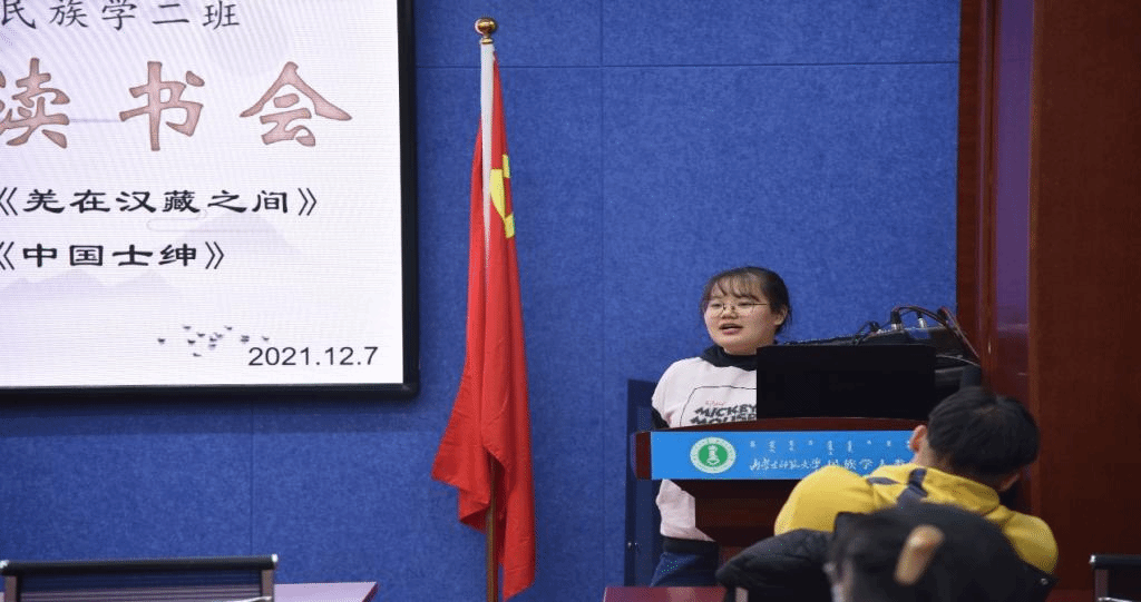 2020级民族学2班全体同学在田楼615会议室开展第2期“碧立格”读书报告会,班主任那日苏老师莅临现场,张楠同学主持读书会。主讲内容是,兰晶同学分享费孝通的《中国士绅》,刘燕燕同学分享王明珂的《羌在汉藏之间》。