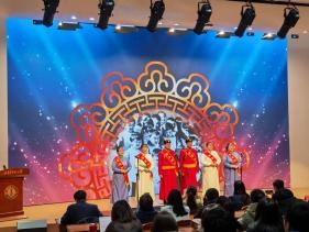 宣讲会中也穿插了精彩的节目,宣讲团成员展示了《骑兵荣耀代代传》、《我也是草原的孩子》等合唱,内蒙古师范大学音乐学院师生也献上了《牧人》等民歌联唱。故事与歌声交织,历史与现实对话,生动呈现了北疆大地各族人民手足相亲、守望相助的动人图景。