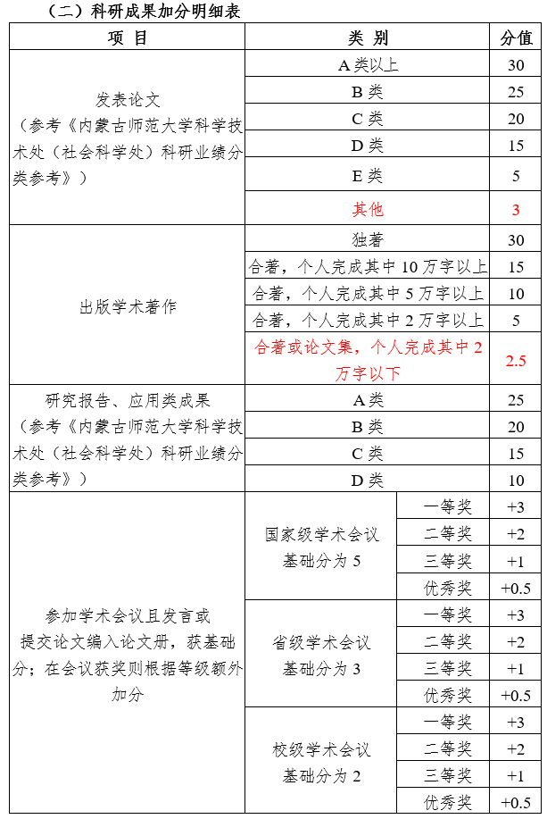 7.研究报告(含调研报告、咨询报告)和应用类成果,须以内蒙古师范大学名义递交,出示采纳部门的采纳证明为依据。参照论文标准,仅为第一作者加对应分的70%,或者是导师为第一作者的第二作者加对应分的50%;其他情况均不加分。
