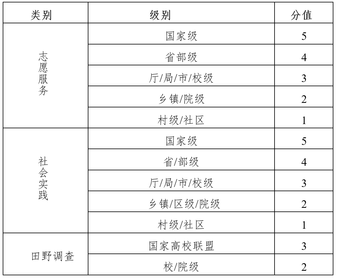 2.社会实践活动包括但不限于“三下乡”“支教”等。